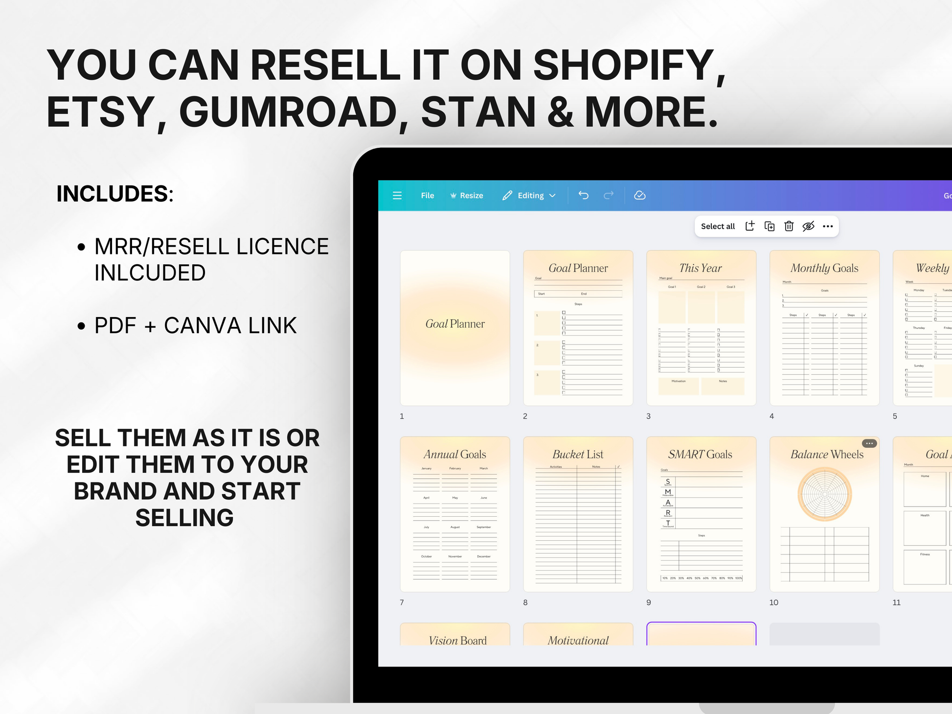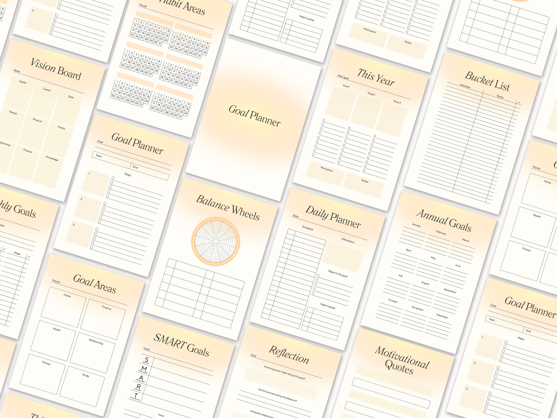 The Resell Empire Goal Planner is a powerful 15-page digital planner designed to help you get clear on what you want, stay focused, and actually follow through — instead of writing goals and forgetting them.