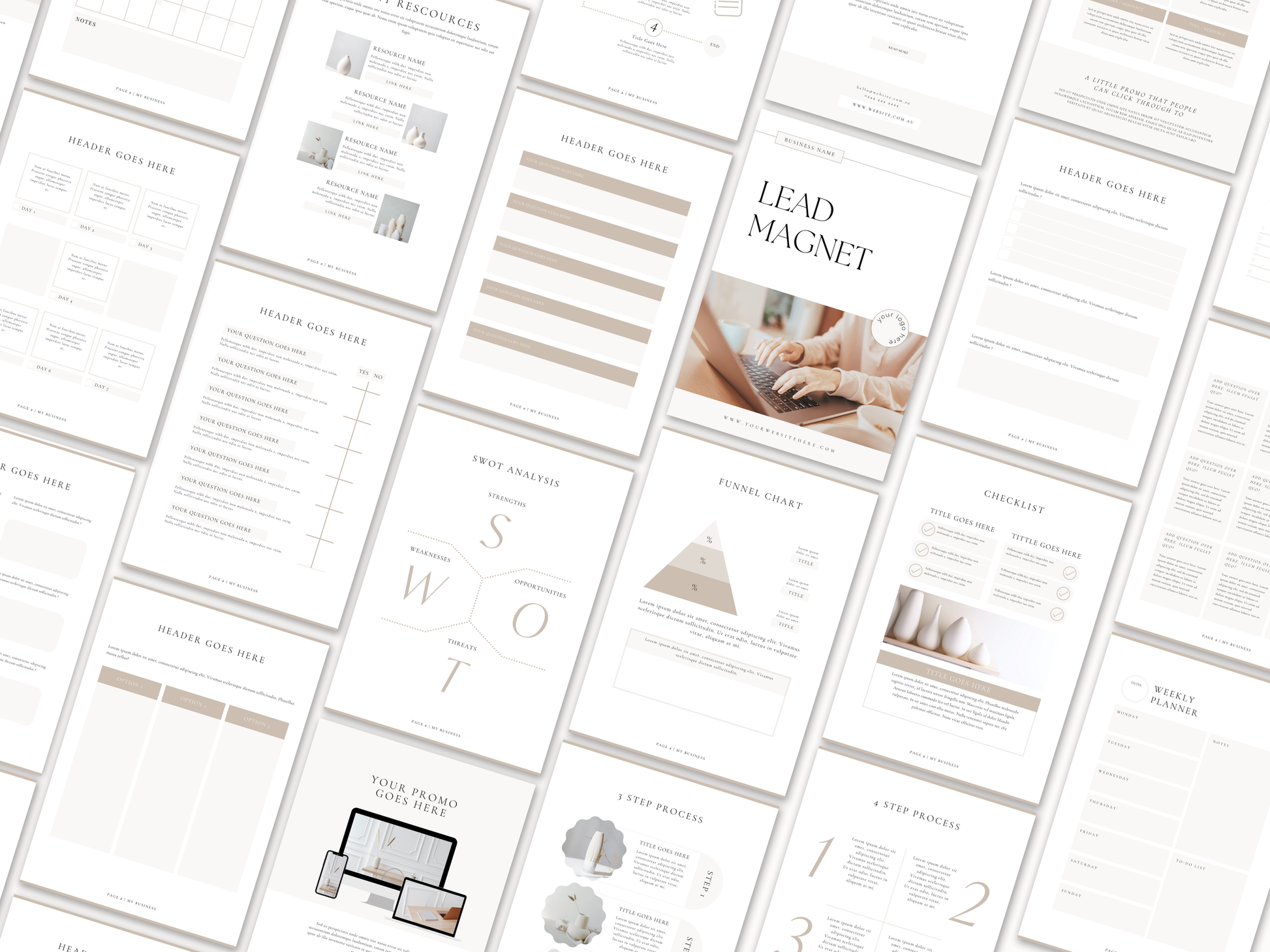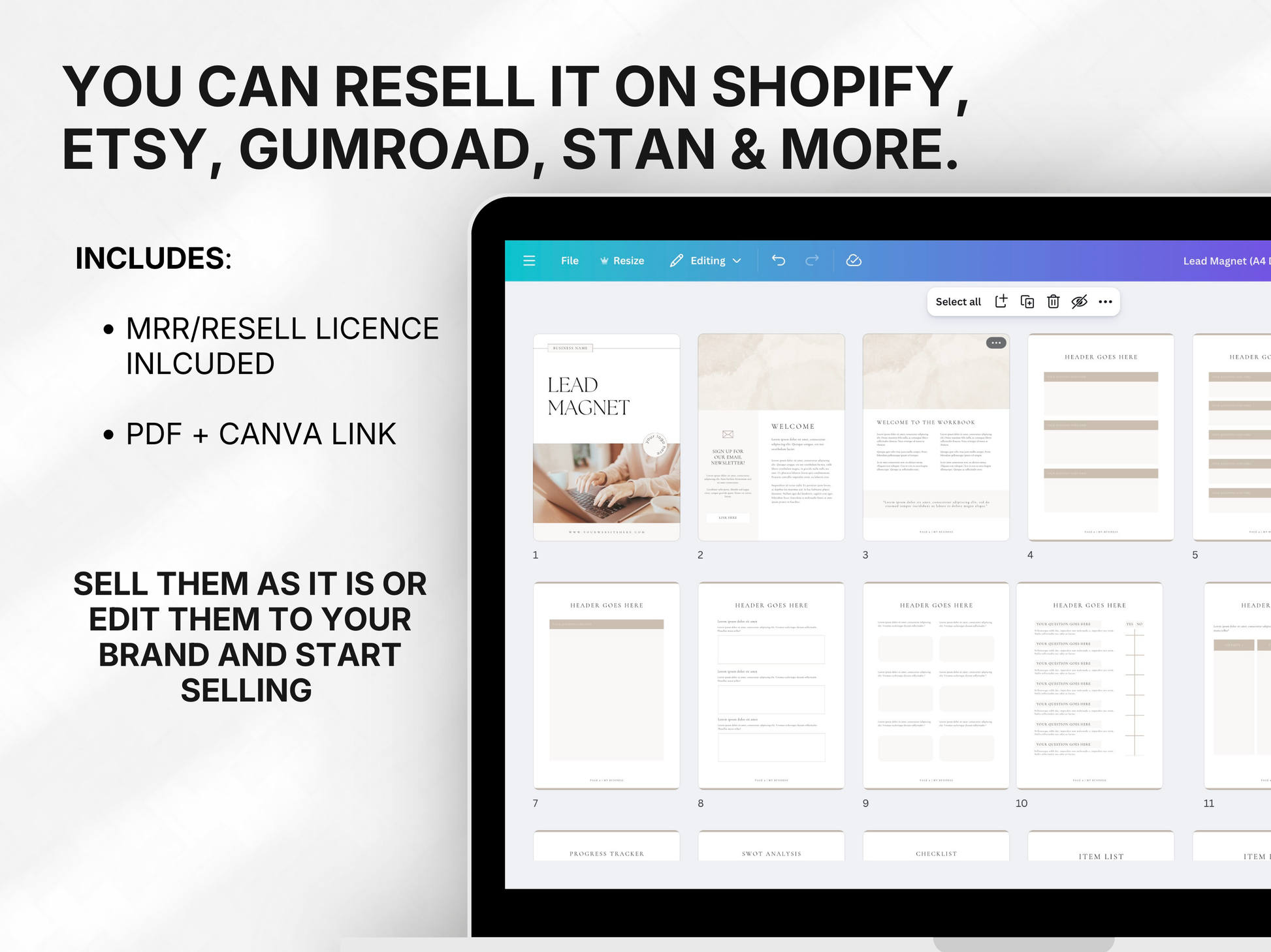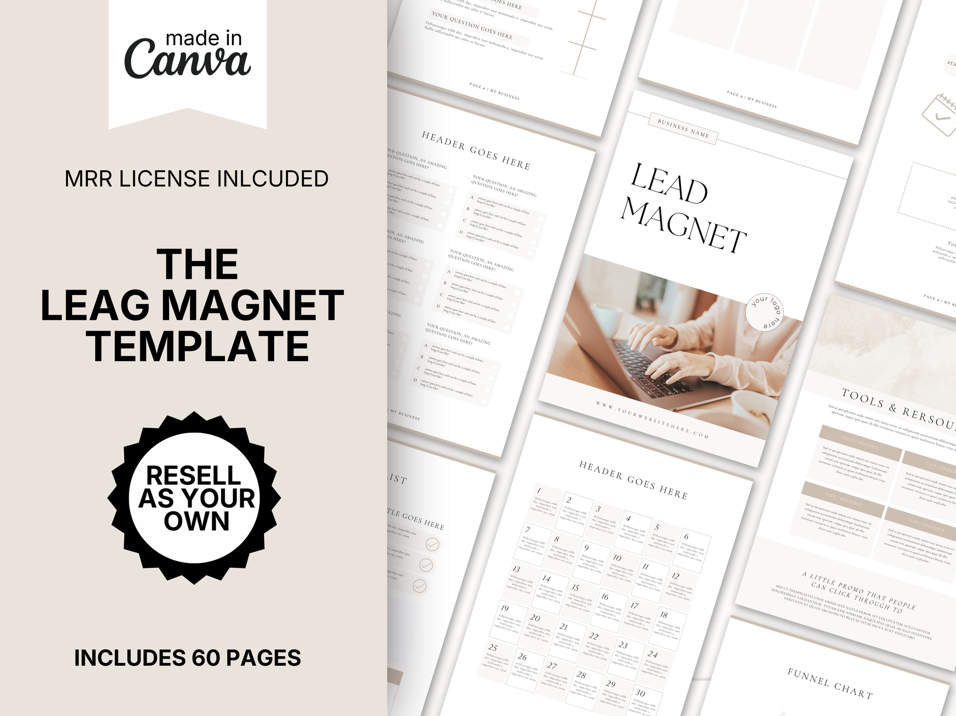 The Resell Empire Lead Magnet Template is a fully-designed 60-page lead generation system that allows you to create professional opt-ins, freebies, and workbooks that grow your email list and build authority automatically.