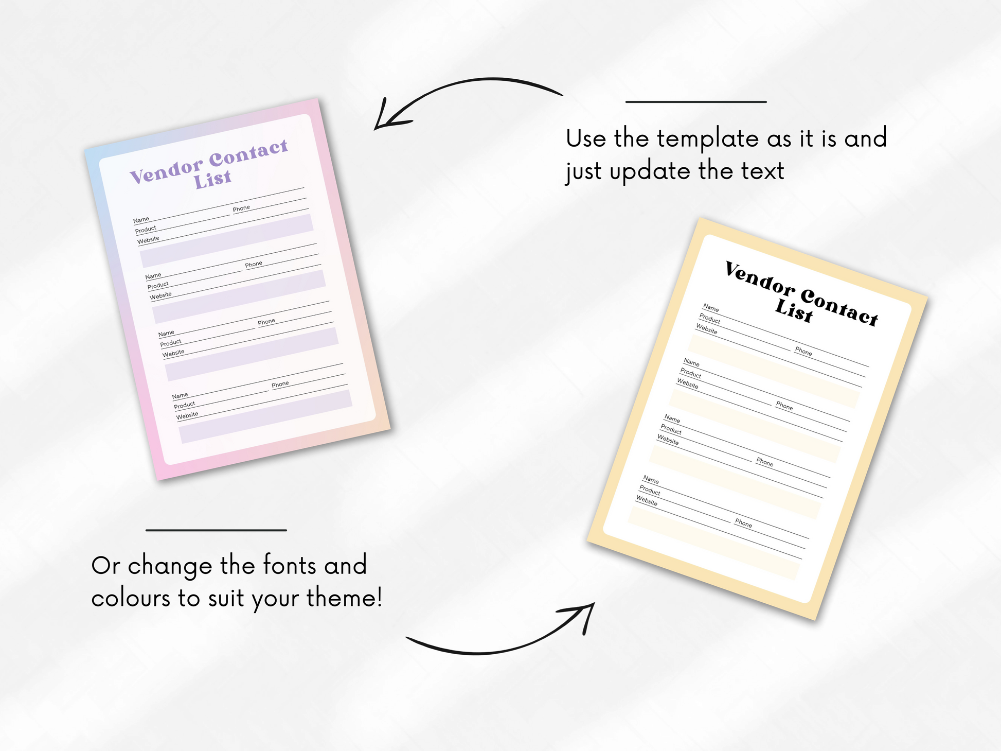 - Vendor Contact List for suppliers, caterers, decorators & more