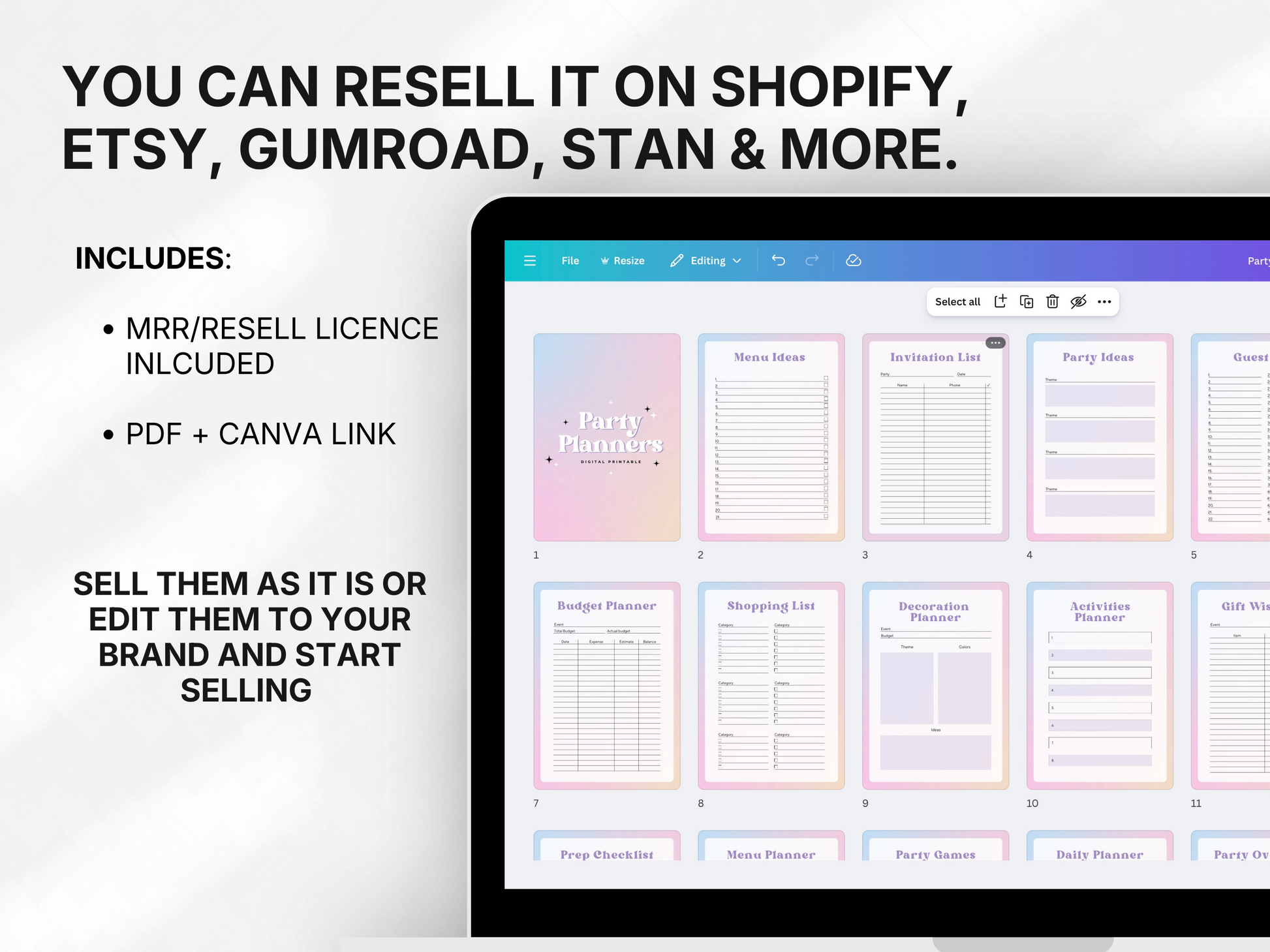 The Resell Empire Party Planner is a beautifully designed 22-page printable planning system that helps you organize, budget, design, and host unforgettable parties — without chaos, last-minute panic, or forgotten details.