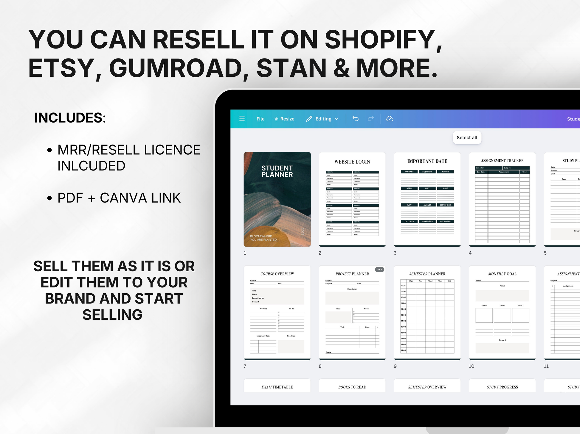The Resell Empire Ultimate Student Planner is a fully structured digital planner designed to help students stay organized, hit deadlines, improve grades, and manage their entire academic life in one place — without stress, chaos, or last-minute panic.
